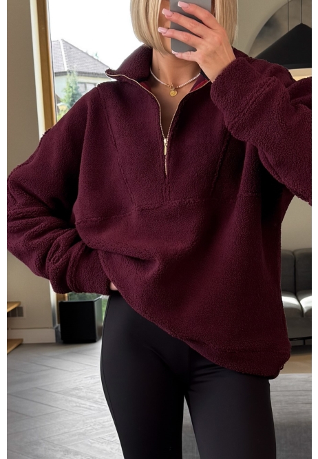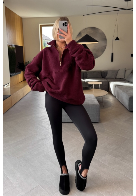Bluza Baranek Bordowa Zip