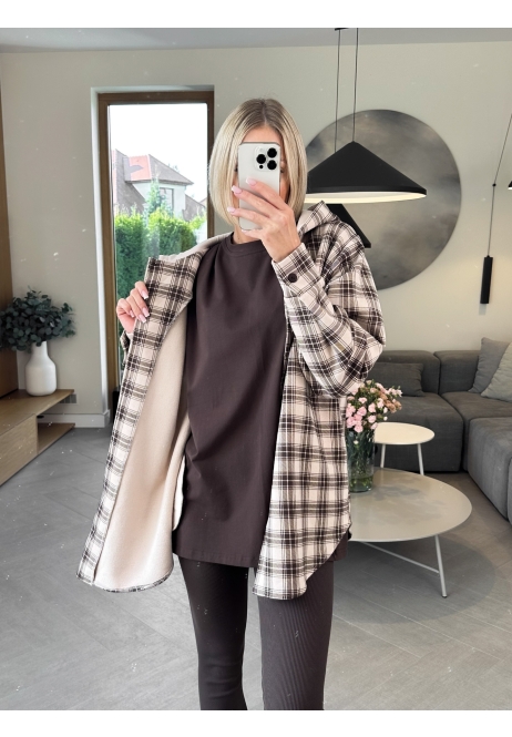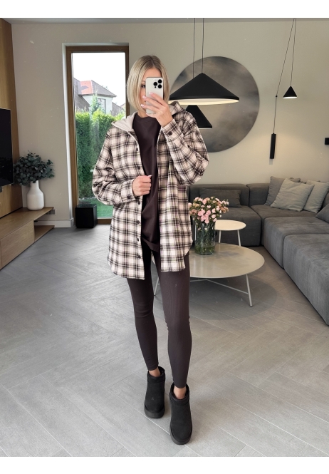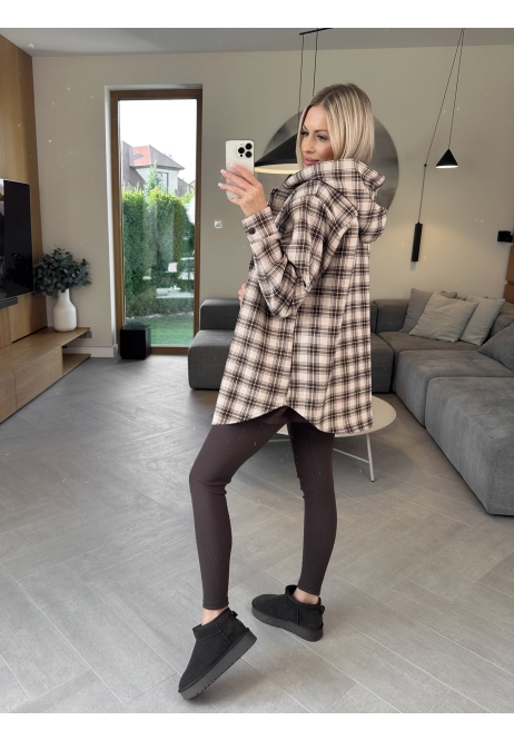 Klasyczna krata w odcieniach beżu spotyka wygodny, luźny krój. Ta bluza to idealne połączenie stylu i komfortu — zapinana na guziki, z kapturem, który doda Ci luzu i otuli w chłodniejsze dni