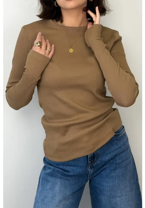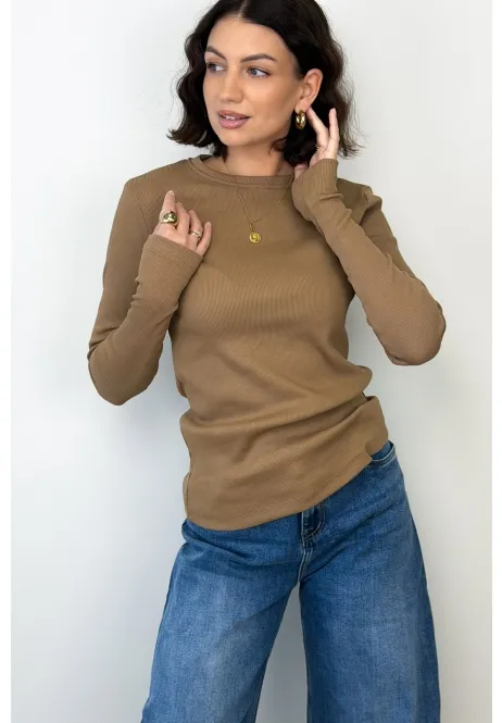Bluzka Basic Prążkowana Mocca to must-have w każdej szafie. Jej wszechstronność pozwala na tworzenie różnorodnych stylizacji na każdą okazję. Dzięki prostocie i elegancji stanowi doskonałą bazę dla wielu outfitów. Warto zainwestować w kilka modeli, aby móc cieszyć się modą przez cały rok! Dostępna na clothstore.pl