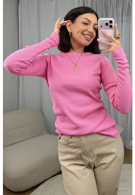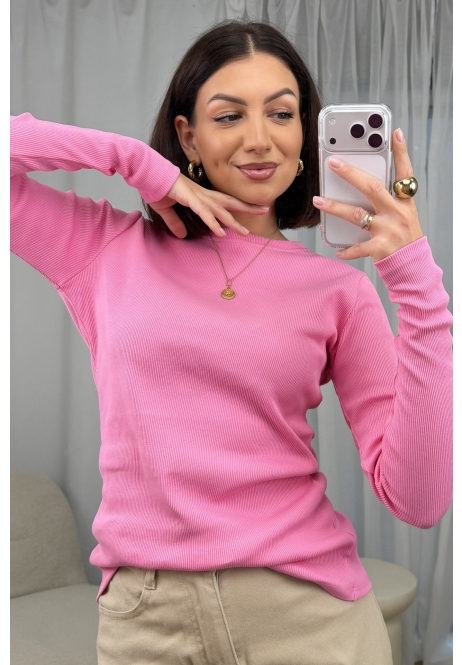 Bluzka Basic Prążkowana Różowa