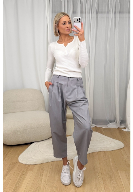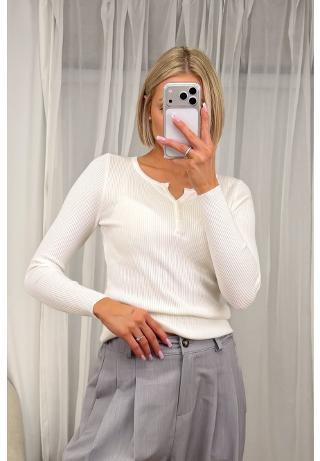 Klasyczna biała prążkowana bluzka z długim rękawem