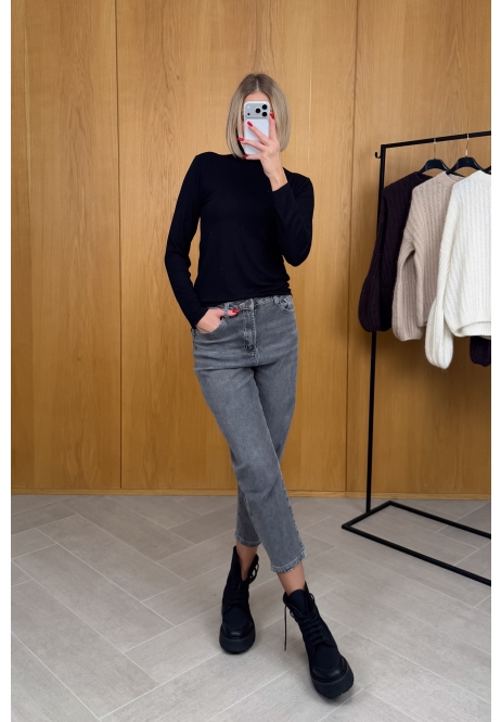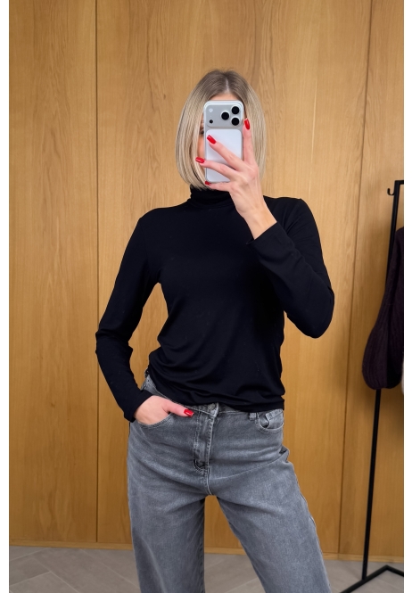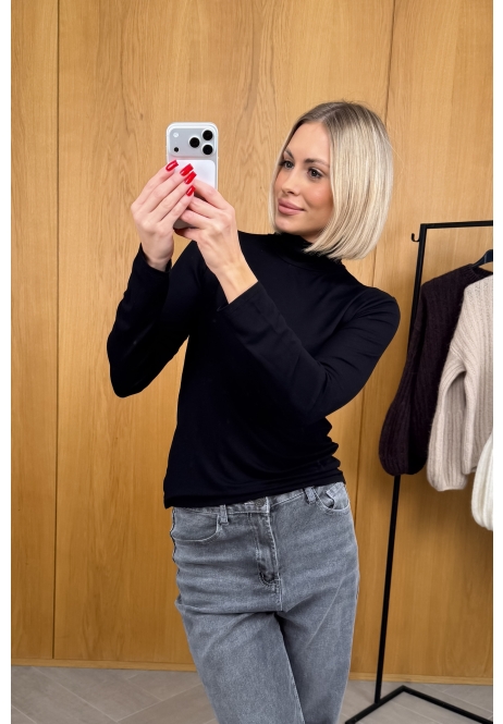 Minimalizm, który robi ogromne wrażenie! Ta czarna bluzka z długim rękawem i subtelnym półgolfem to idealna baza do wielu stylizacji – zarówno eleganckich, jak i codziennych.
