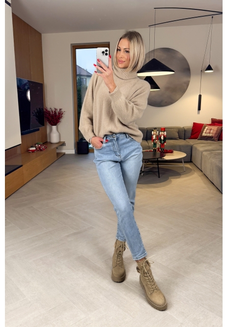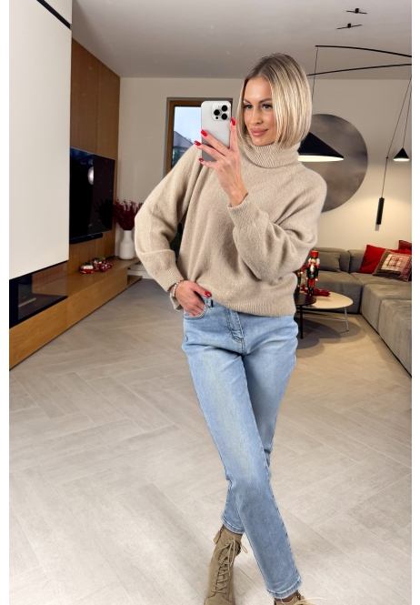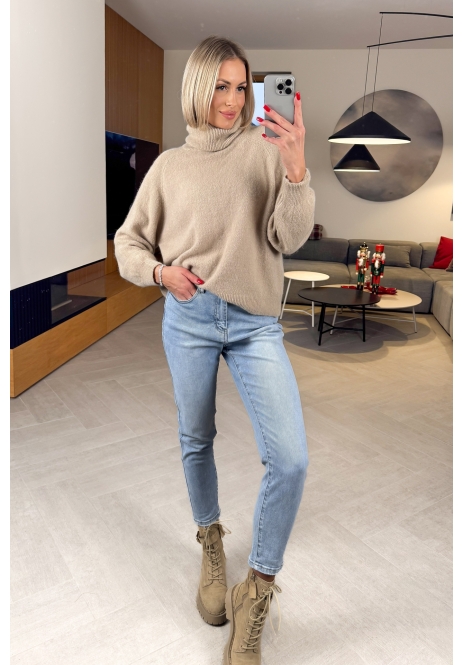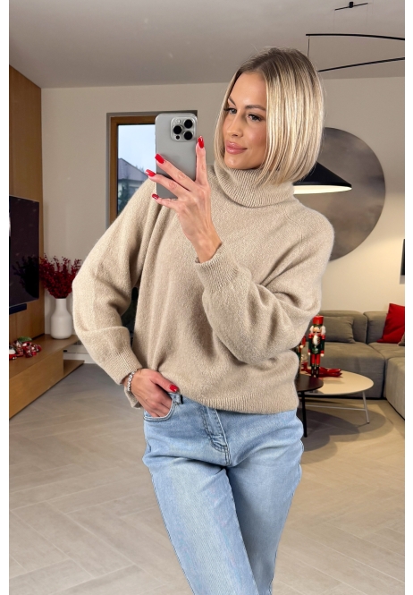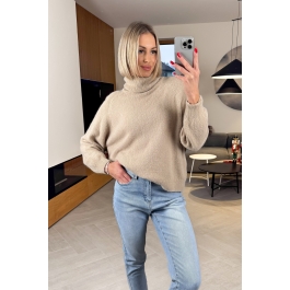 Ten sweter w ciepłym, beżowym odcieniu to kwintesencja przytulności. Miękki, lekko puszysty materiał otula ciało jak ulubiony koc, a prosty, luźny krój sprawia, że nosi się go z czystą przyjemnością.