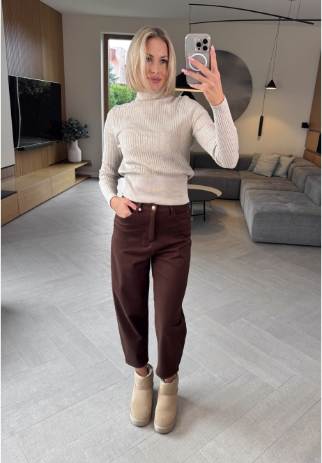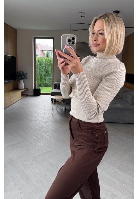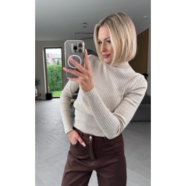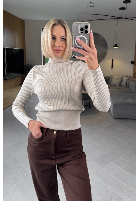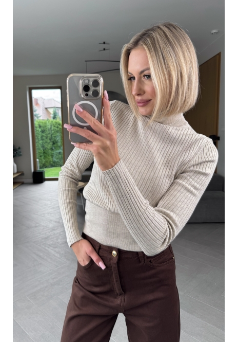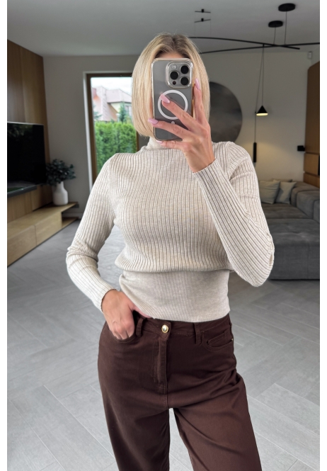 Beżowy sweter z golfem