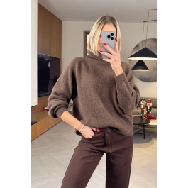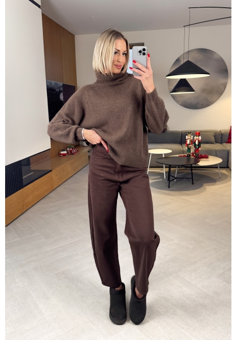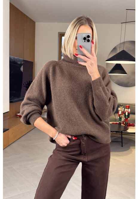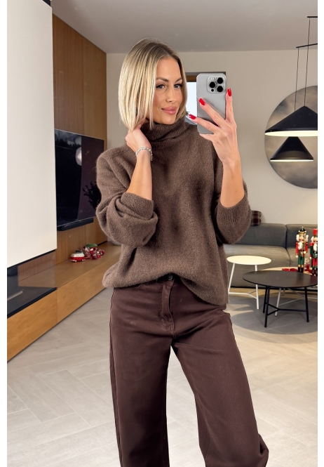 Brązowy, puszysty sweter – klasyczna wygoda na chłodne dni