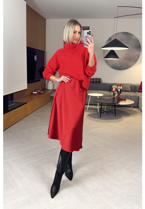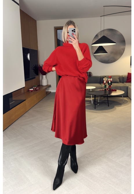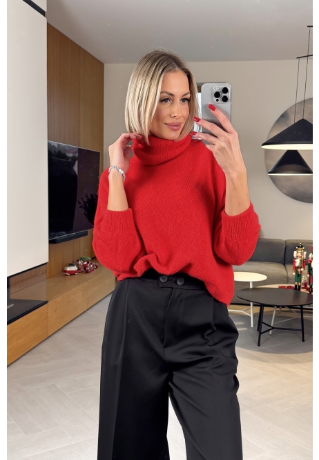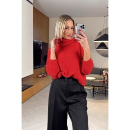 Ten sweter w ciepłym, czerwonym odcieniu to kwintesencja przytulności. Miękki, lekko puszysty materiał otula ciało jak ulubiony koc, a prosty, luźny krój sprawia, że nosi się go z czystą przyjemnością.
