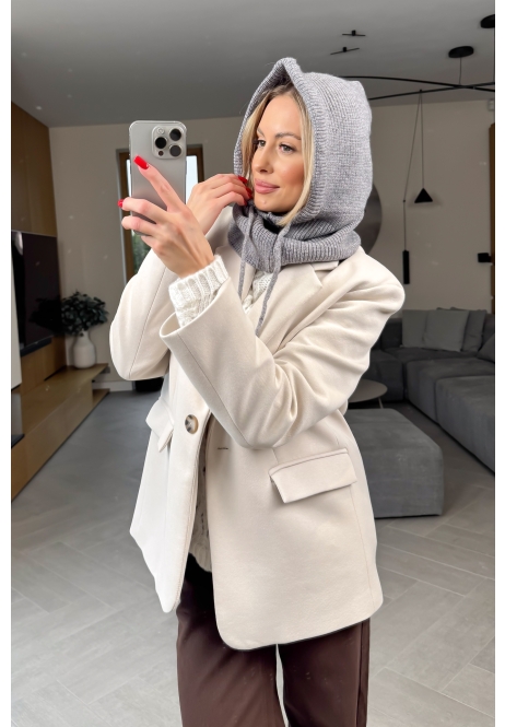 Ten dzianinowy komin z kapturem w odcieniu szarego melanżu to must have na chłodniejsze dni!