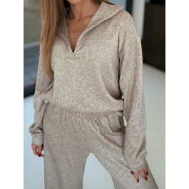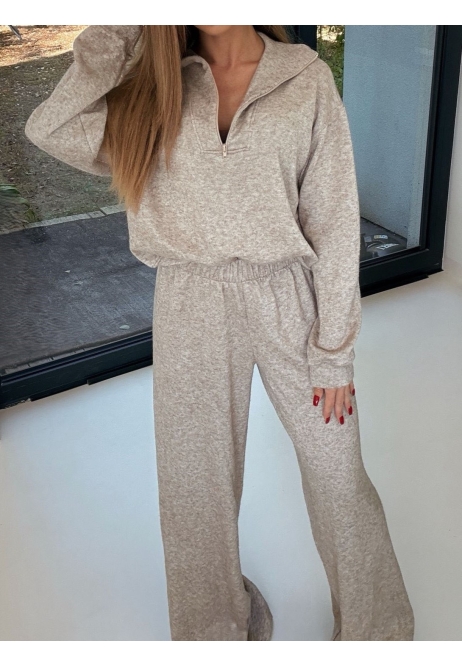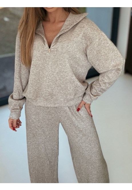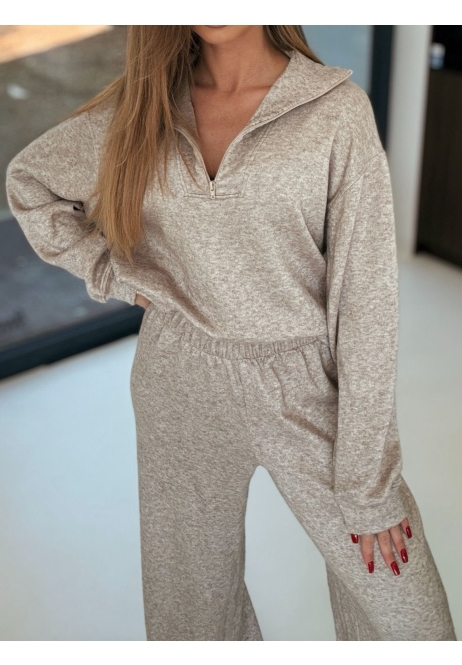 Komplet w głębokim beżu– stylowy i komfortowy, idealny na codzienne stylizacje. Składa się z oversize’owej bluzy z długim rękawem oraz spodni z szeroką nogawką.