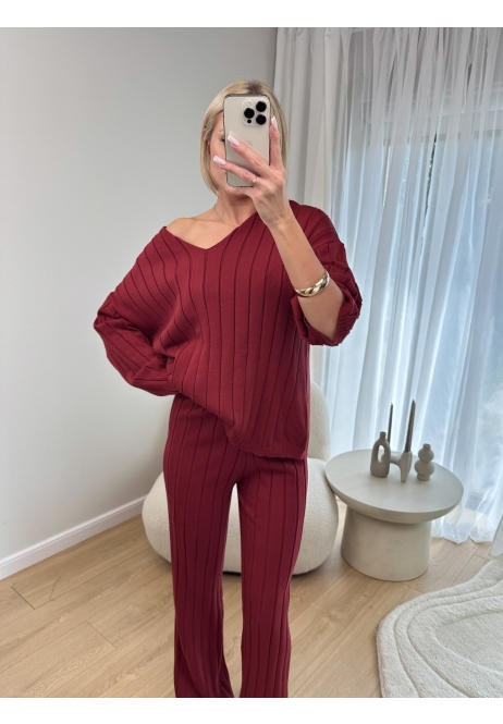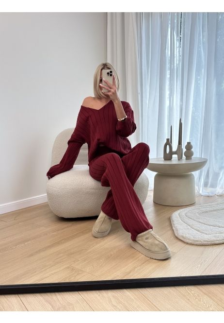 Luźny sweter z dekoltem w serek w połączeniu ze spodniami o prostym kroju tworzy zestaw idealny zarówno na co dzień, jak i na spotkania w mieście.