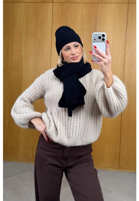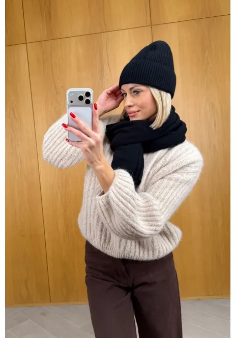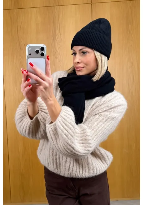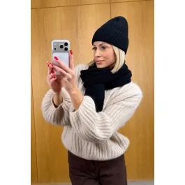 Czapka ma perfekcyjne dopasowanie – trzyma ciepło i wygląda stylowo, a klasyczny szalik możesz owinąć na tysiąc sposobów. Razem tworzą look, który pasuje do wszystkiego: od puchówki po elegancki płaszcz. Minimalistyczny, ponadczasowy i absolutnie piękny!