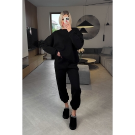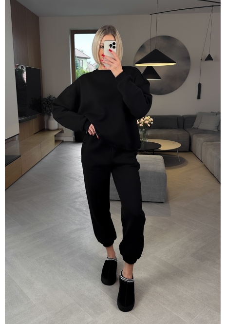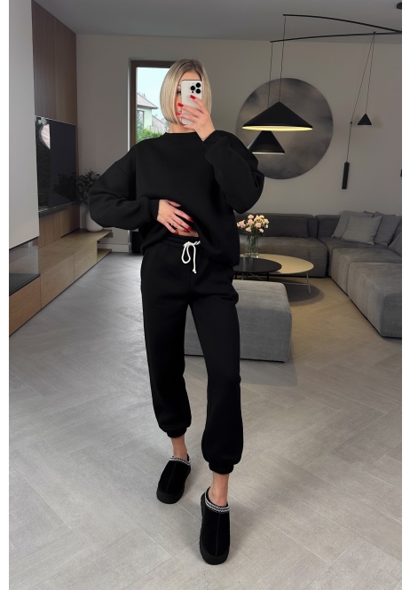 Czarny kolor to ponadczasowy klasyk – pasuje absolutnie do wszystkiego. Ten komplet założysz zarówno na spacer, wyjście do kawiarni, jak i na domowe lenistwo. A dzięki ociepleniu, zostanie z Tobą także w chłodniejsze dni!