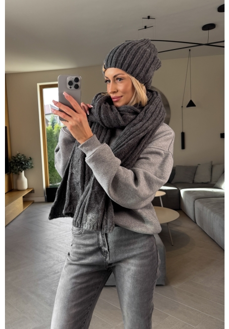 Komplet Czapka i Szalik Grafitowy Harmony