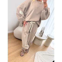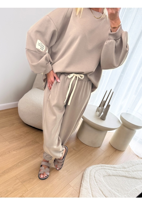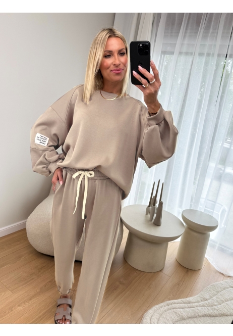 Przytulny, minimalistyczny zestaw w kolorze taupe, który sprawi, że poczujesz się modnie i komfortowo jednocześnie. Oversize’owa bluza i luźne spodnie z elastyczną gumką to duet idealny na co dzień – do domu, na spacer czy spotkanie z przyjaciółką.