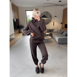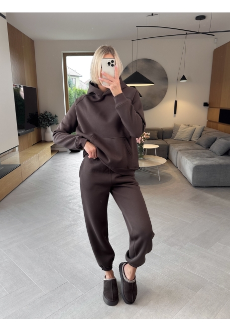Poznaj nasz bestsellerowy komplet Snugly w eleganckim odcieniu czekolady, który pokocha każda miłośniczka wygodnych, ale stylowych rozwiązań. Zestaw składa się z bluza typu hoodie z kapturem oraz spodni baggy z gumką w pasie, które razem tworzą look idealny na chłodniejsze dni.