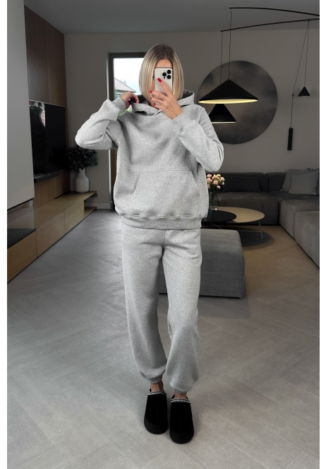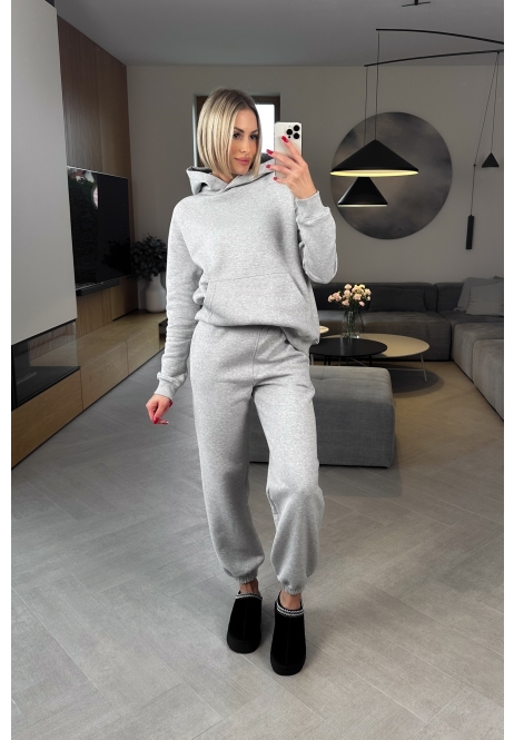 Poznaj nasz bestsellerowy komplet Snugly w eleganckim odcieniu szarości, który pokocha każda miłośniczka wygodnych, ale stylowych rozwiązań. Zestaw składa się z bluza typu hoodie z kapturem oraz spodni baggy z gumką w pasie, które razem tworzą look idealny na chłodniejsze dni.