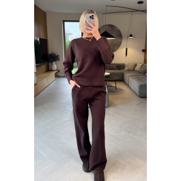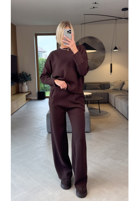 Miękki, otulający komplet, który pokochasz od pierwszego założenia! Składa się z oversize’owego swetra z długim rękawem i szerokich, luźnych spodni o prążkowanym wykończeniu.