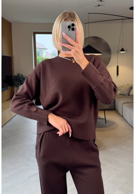 Całość utrzymana w ciepłym, głębokim odcieniu brązu — idealnym na jesienne i zimowe dni.