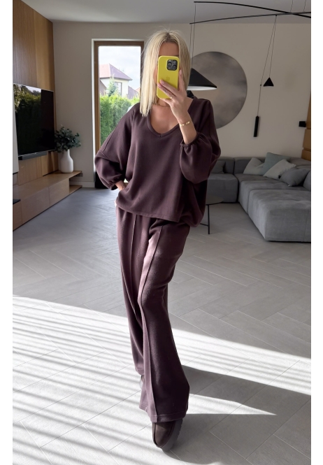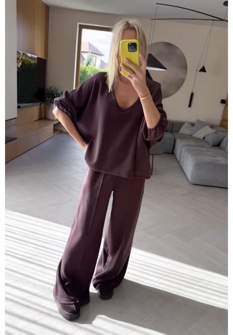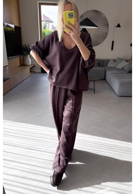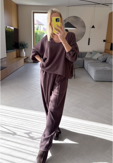 Wygoda, styl i minimalizm w najlepszym wydaniu. Ten komplet sweterkowy w odcieniu brązu to must-have w Twojej szafie – idealny zarówno na leniwe dni w domu, jak i wyjścia na miasto.
