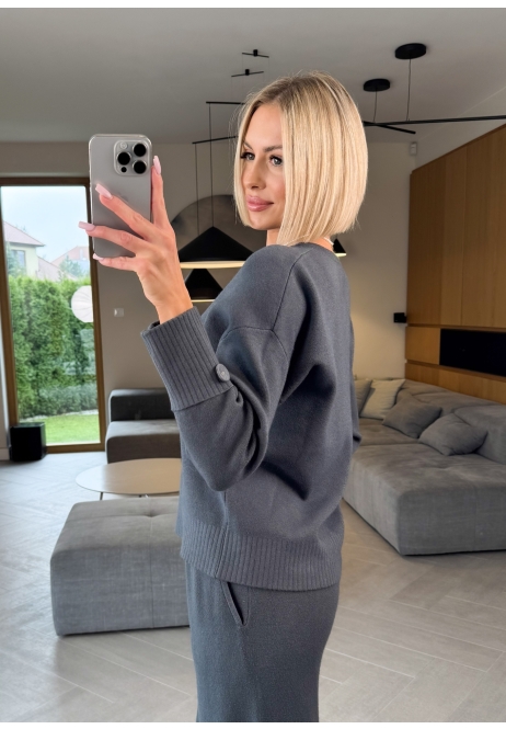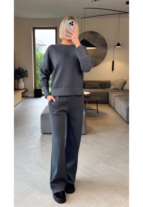 Miękki, otulający komplet, który pokochasz od pierwszego założenia! Składa się z oversize’owego swetra z długim rękawem i szerokich, luźnych spodni o prążkowanym wykończeniu.