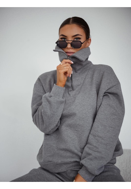 Bluza z długim rękawem, zakończona półgolfem i krótkim zamkiem, dodaje sportowego charakteru i praktyczności – możesz nosić ją rozpiętą lub zapiętą pod szyję. Spodnie z elastyczną gumką w pasie oraz ściągaczami na dole gwarantują komfort i dopasowanie do sylwetki.