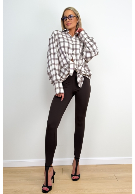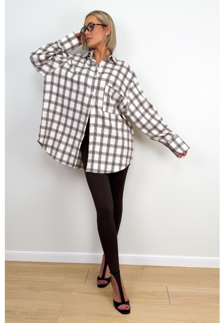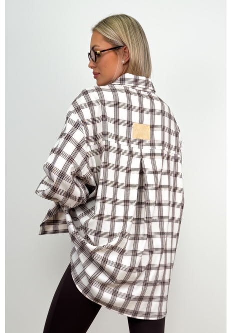 Klasyczna koszula w beżowo-brązową kratę, która łączy elegancję z codzienną swobodą