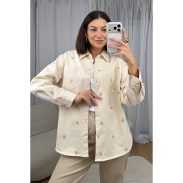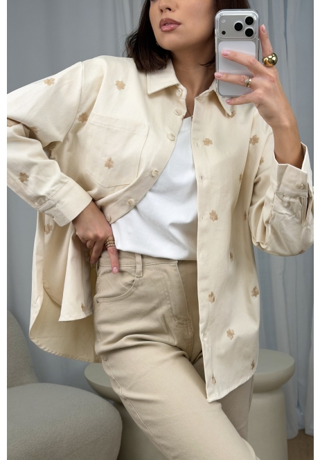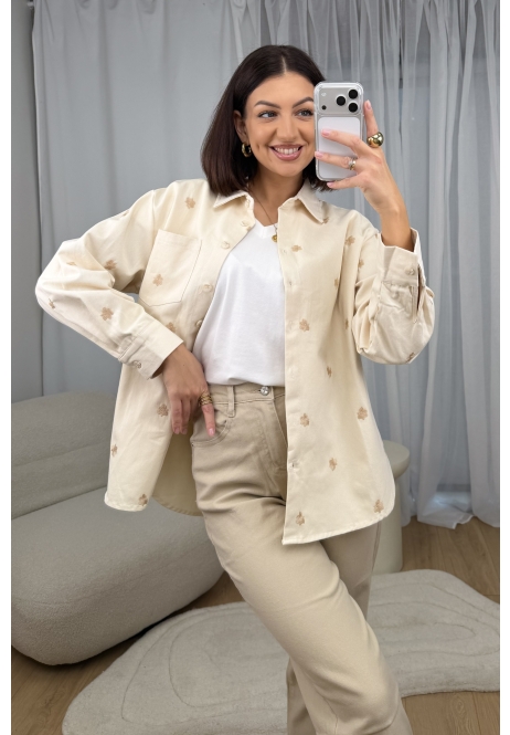 Subtelna i ponadczasowa. Ta koszula zachwyca minimalistycznym designem oraz drobnym, kwiatowym printem w ciepłym, beżowym odcieniu. Dzięki klasycznemu kołnierzykowi i kieszonce na piersi prezentuje się bardzo elegancko, a jednocześnie lekko i kobieco.