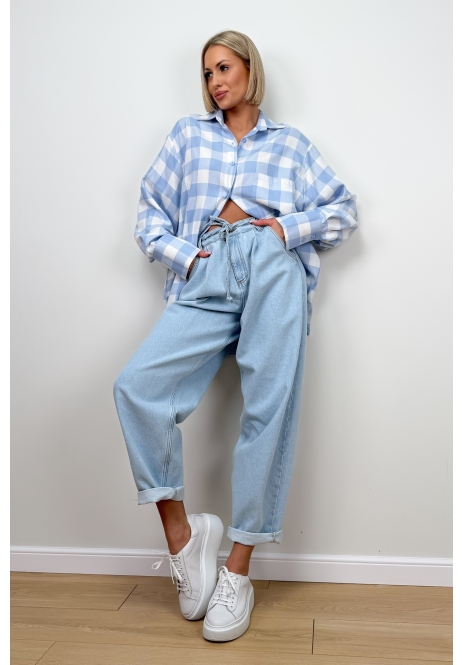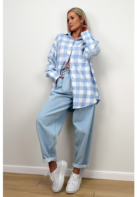 Lekka, kobieca koszula w błękitno-białą kratę, która od razu kojarzy się ze świeżością i luzem
