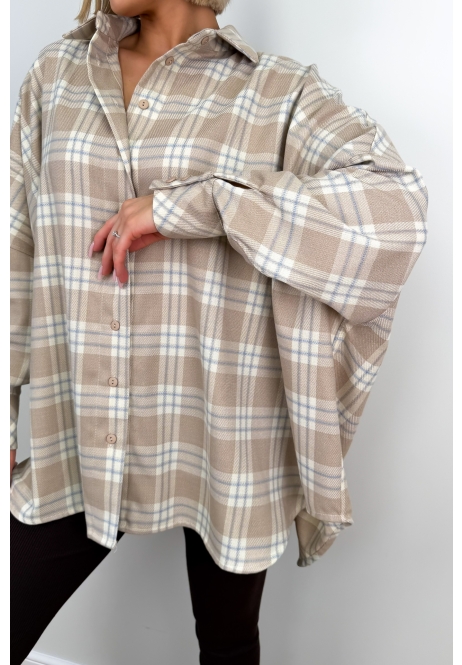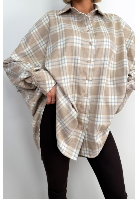 Koszula w kratę o luźnym, komfortowym kroju z klasycznym kołnierzem i długim rękawem. Model zapinany na guziki, utrzymany w stonowanej kolorystyce beżu, błękitu i bieli, dzięki czemu łatwo dopasować go do codziennych stylizacji. Miękki materiał sprawia, że koszula dobrze układa się na sylwetce i może być noszona zarówno samodzielnie, jak i jako lekka narzutka.