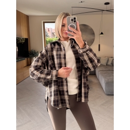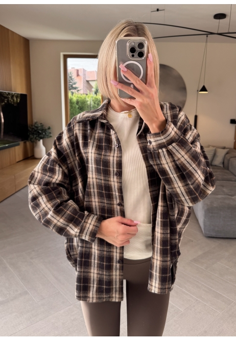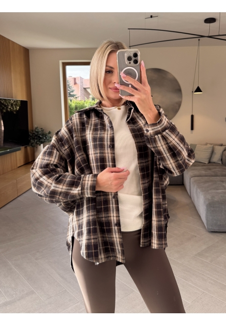 Fason: luźny, oversize z klasycznym kołnierzykiem i długim rękawem, który można podwinąć dla bardziej casualowego looku.