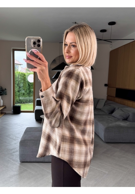 Ciepła, miękka i stylowa – dokładnie taka, jakiej potrzebujesz na chłodniejsze dni. Ta oversize’owa koszula w odcieniach beżu i brązu to połączenie klasyki z wygodą. Idealna do legginsów, jeansów lub narzucona na top – stworzy look pełen luzu i stylu!