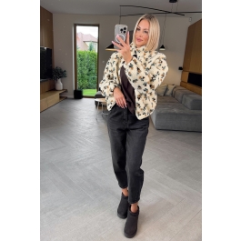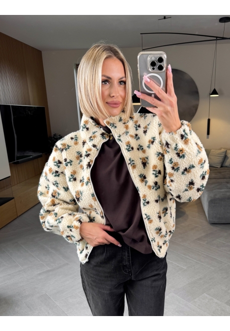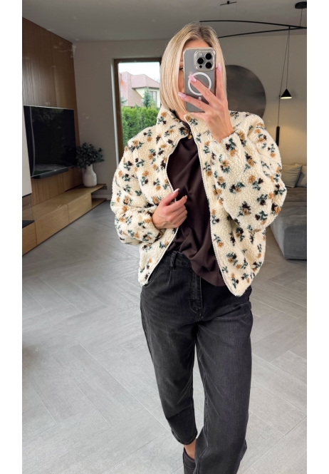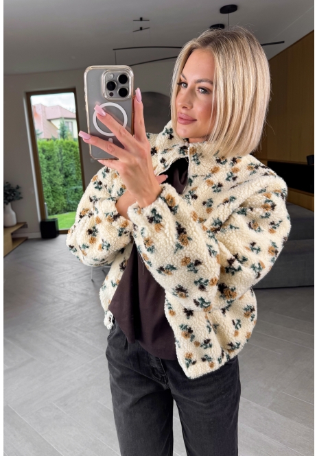 Ta urocza kurtka w kremowym kolorze z kwiatowym wzorem to idealny wybór na chłodniejsze dni . Wykonana z przyjemnego w dotyku, pluszowego materiału, otula niczym mięciutki kocyk .