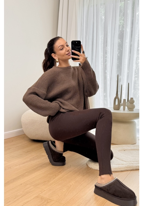 Legginsy z Zamkiem Brązowe Gusto