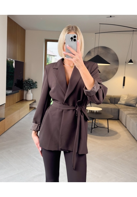 Marynarka Brązowa Alesia to ponadczasowy fason, który świetnie sprawdzi się zarówno w codziennych stylizacjach, jak i w bardziej formalnych okazjach.