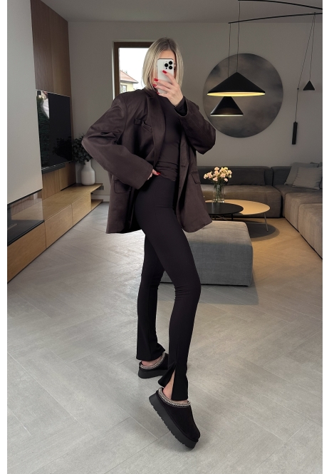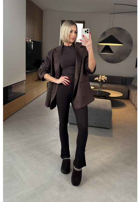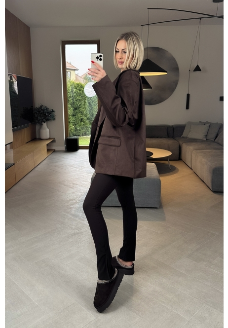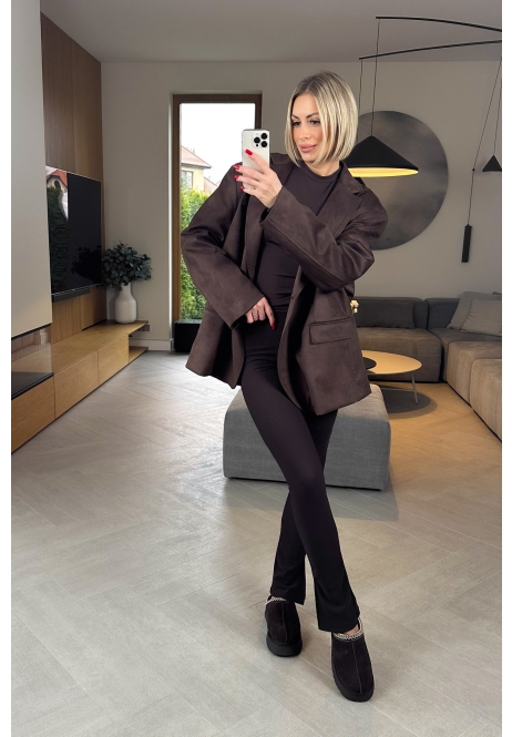 Miękka, matowa tkanina o głębokim, ciepłym odcieniu brązu dodaje jej wyjątkowego charakteru. Noś ją z jeansami, spodniami z kantem lub na sukienkę — zawsze wygląda stylowo