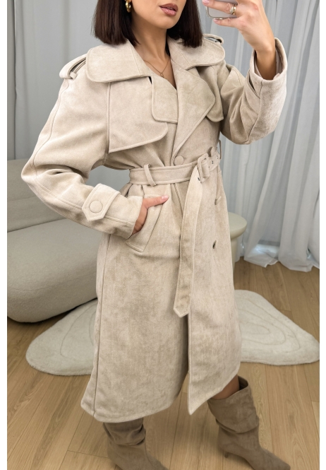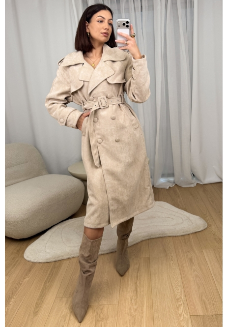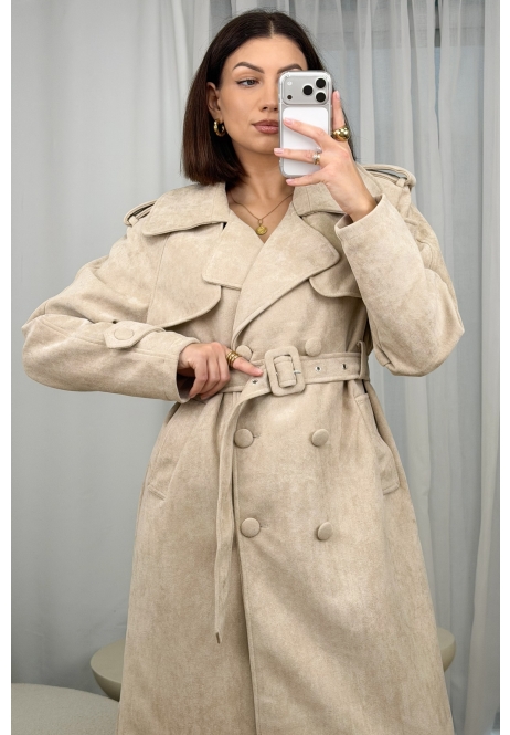 Elegancki płaszcz typu trencz w kolorze beżowym