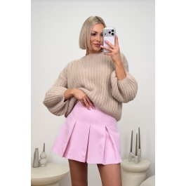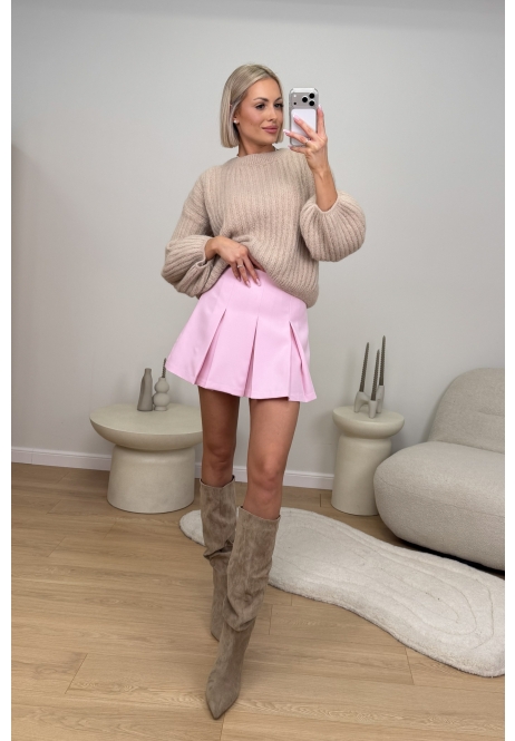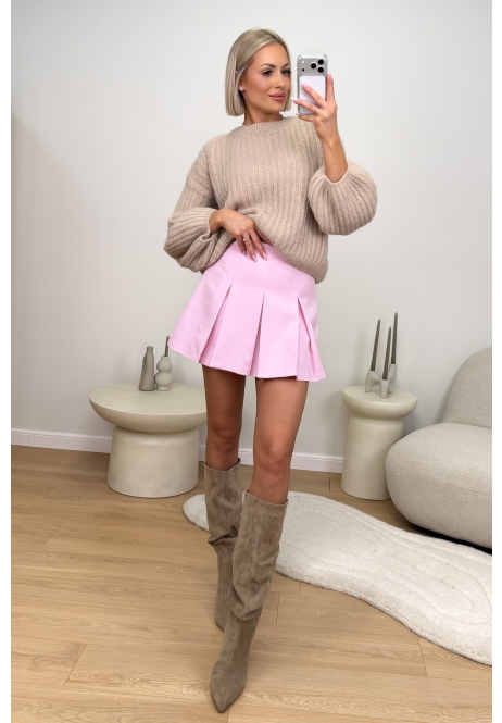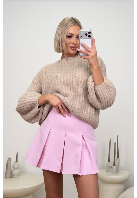 Pudrowe spódnico-spodnie z plisami