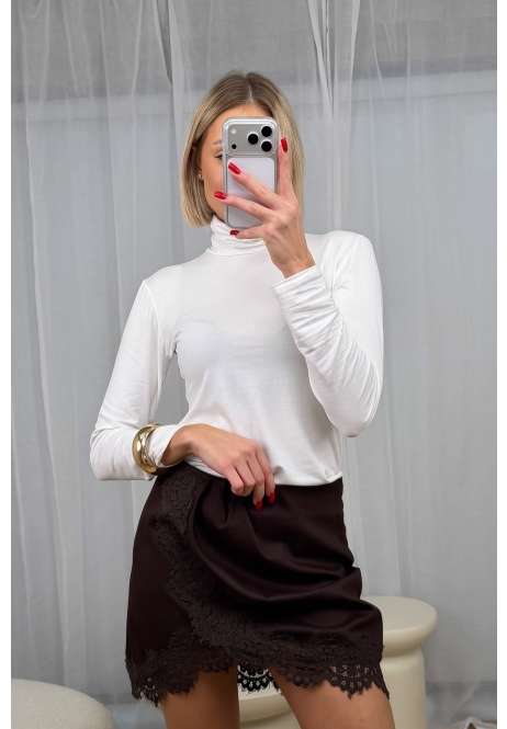 Koronka układa się asymetrycznie, subtelnie podkreślając nogi i dodając całości lekkości oraz elegancji. Spódniczka jest miękka, wygodna i po prostu… zachwycająca!
