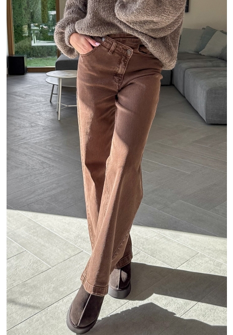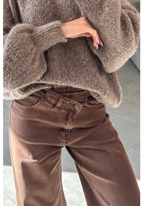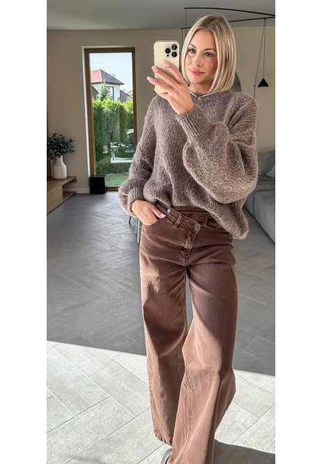 Wygoda i styl w jednym! Te jeansy w odcieniu głębokiego brązu to idealny wybór dla osób, które lubią swobodę i modny look. Szerokie nogawki typu wide leg wydłużają sylwetkę i dodają lekkości, a wysoki stan pięknie podkreśla talię.