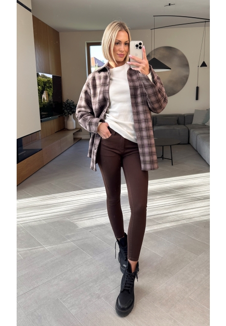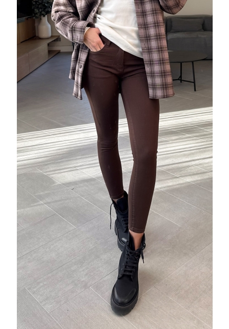 Klasyka, która nigdy nie wychodzi z mody! Te brązowe jeansy typu skinny idealnie dopasowują się do sylwetki, podkreślając nogi i nadając im smukły wygląd. Wysoki stan zapewnia komfort i pięknie akcentuje talię, a elastyczny materiał sprawia, że są wygodne w noszeniu przez cały dzień.