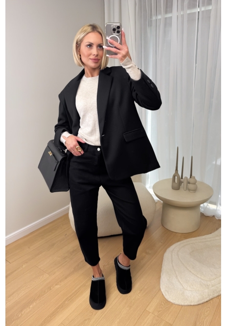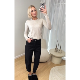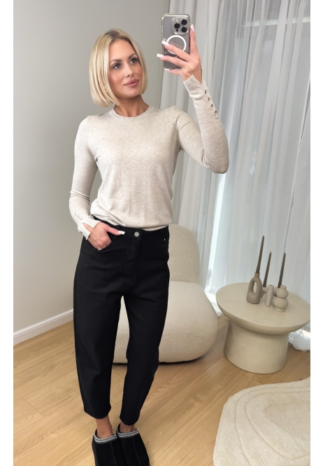 Spodnie Czarne Baggy to jeansy o modnym, balonowym kroju z wysokim stanem, które łączą wygodę z nowoczesnym stylem. Wykonane z miękkiego denimu, delikatnie zwężają się ku dołowi, podkreślając talię i nadając sylwetce charakteru.