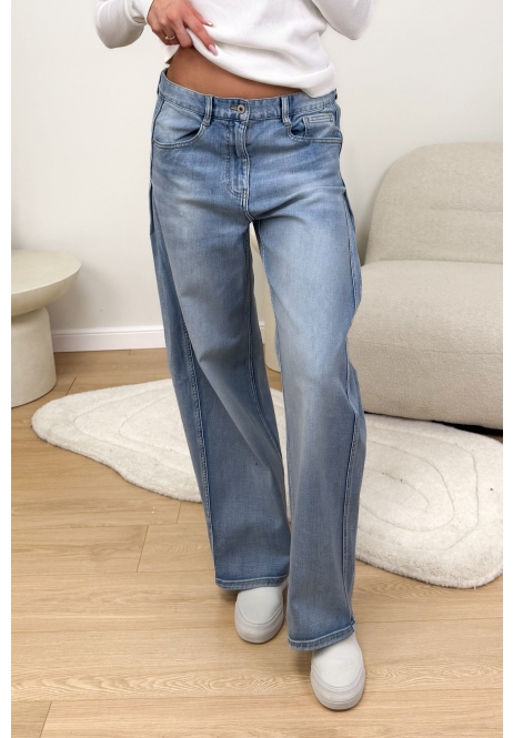 Stylowe jeansy o luźniejszym kroju z modnym, jasnoniebieskim efektem sprania