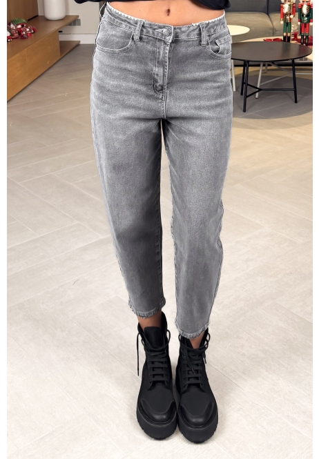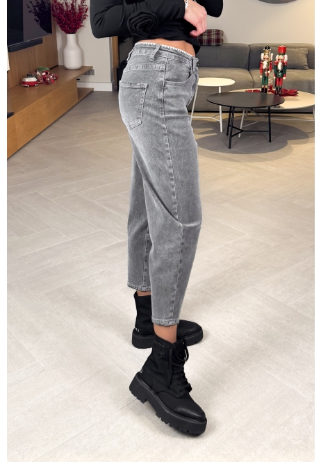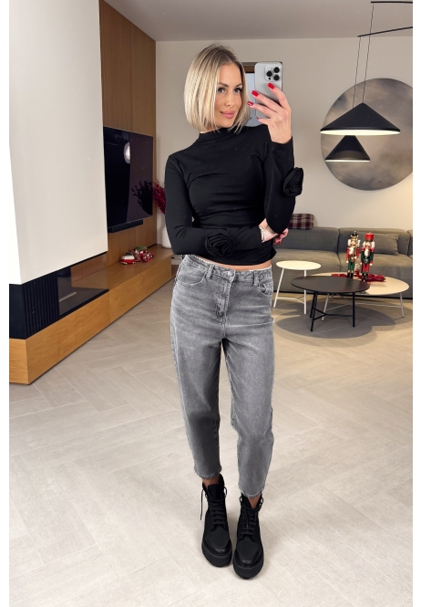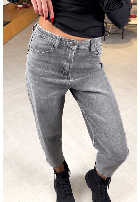 Spodnie Szare Balloon Fit to jeansy o modnym, balonowym kroju z wysokim stanem, które łączą wygodę z nowoczesnym stylem. Wykonane z miękkiego denimu, delikatnie zwężają się ku dołowi, podkreślając talię i nadając sylwetce charakteru.