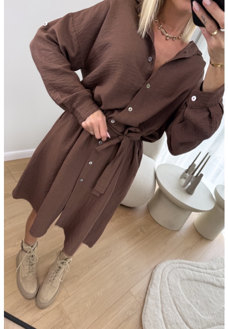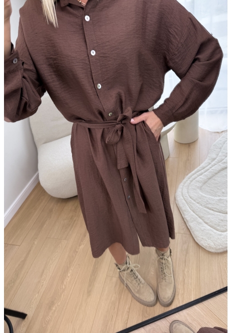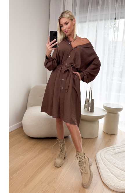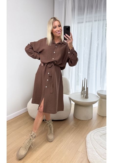 Sukienka Brązowa Lona to kobieca i zwiewna propozycja w odcieniu brązu, idealna na wiosnę i lato. Jej lekko rozkloszowany krój i delikatny materiał zapewniają swobodę ruchów i podkreślają romantyczny charakter stylizacji.