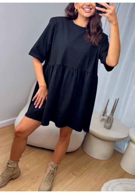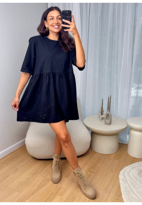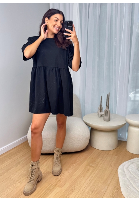 Sukienka, która łączy swobodę i elegancję – luźny, lekko bufkowy krój daje pełen komfort, a czarny kolor dodaje klasy i tajemniczości.