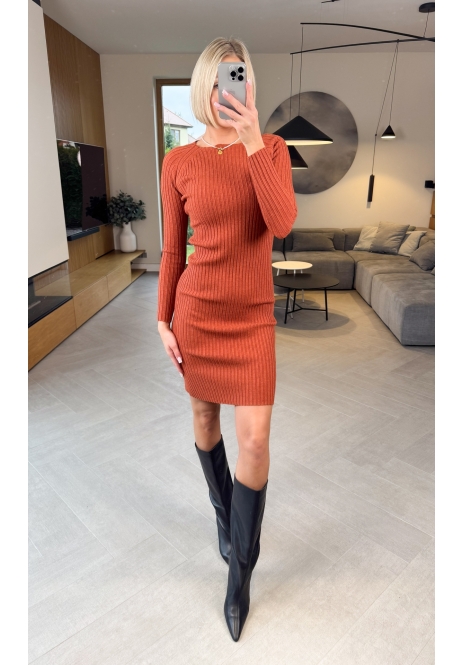 MOANA to nasza perełka wśród sukienek – kolor dyniowy, prążkowana i cudownie dopasowana do sylwetki. Idealna na każdą okazję – od romantycznych kolacji po jesienne spacery z wysokimi kozakami