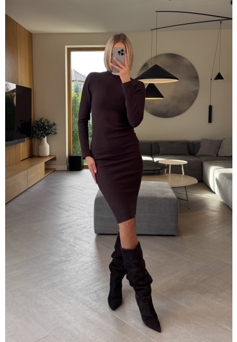 Ta długa, prążkowana sukienka to prawdziwa definicja minimalizmu, który podkreśla kobiece kształty w najpiękniejszy sposób!