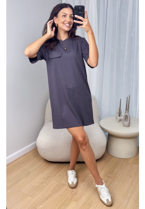 Grafitowa idealna Sukienka z Patką – autorska elegancja w codziennym wydaniu ♥