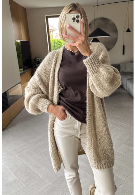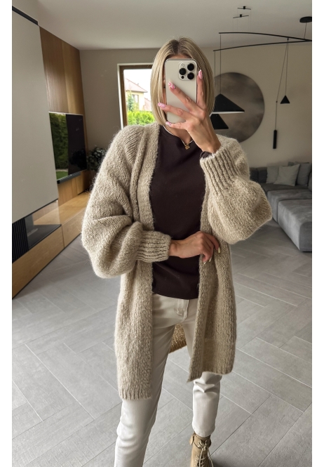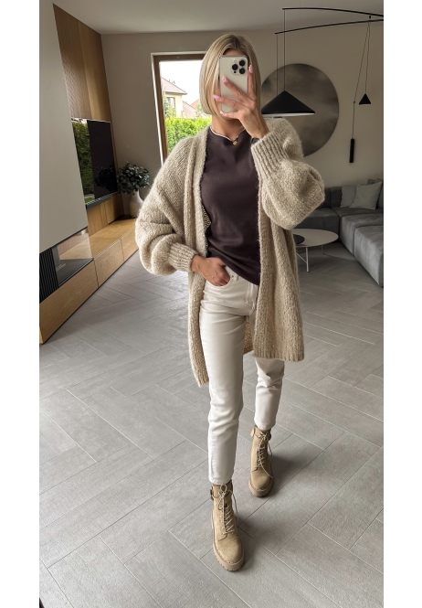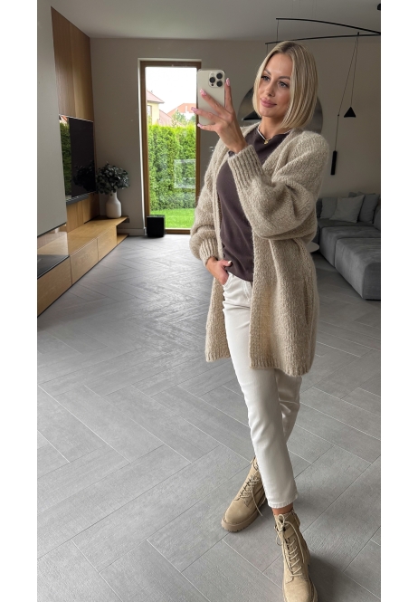 Otul się miękkością i wygodą! Ten długi kardigan to must-have w Twojej szafie – lekki, puszysty i niesamowicie przyjemny w dotyku. Luźny fason bez zapięcia sprawia, że świetnie układa się na sylwetce, a praktyczne kieszenie dodają mu uroku i funkcjonalności.