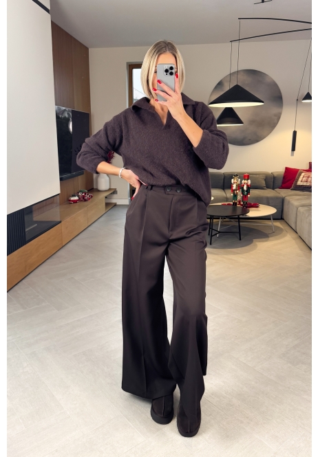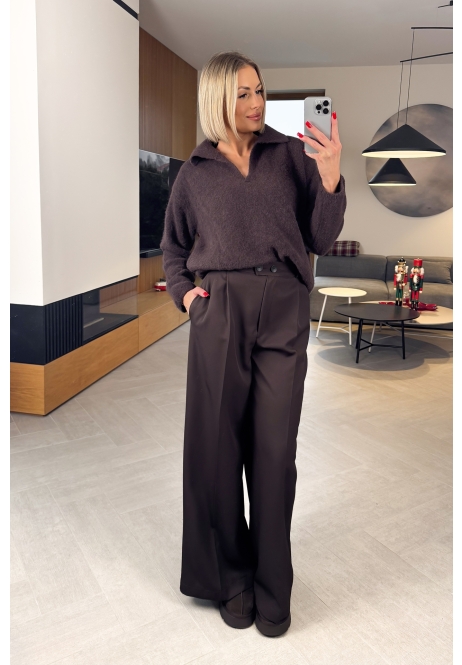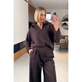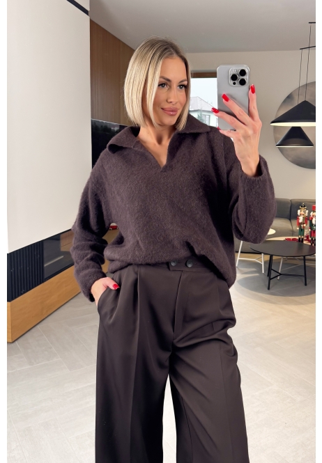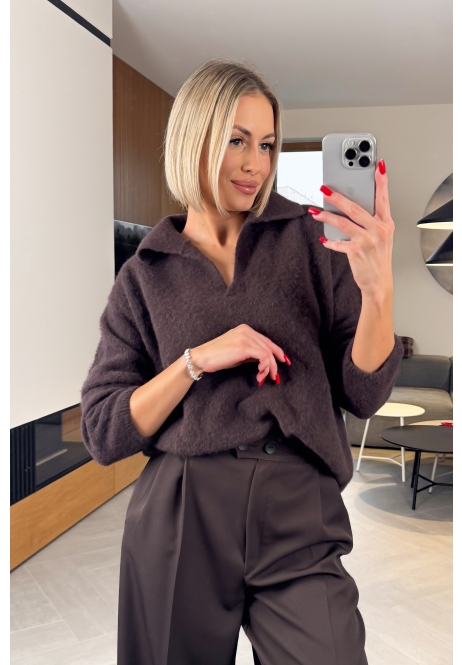 Miękki, brązowy sweter z kołnierzem – idealny na chłodniejsze dni