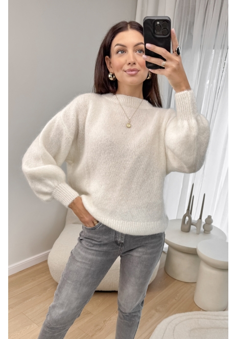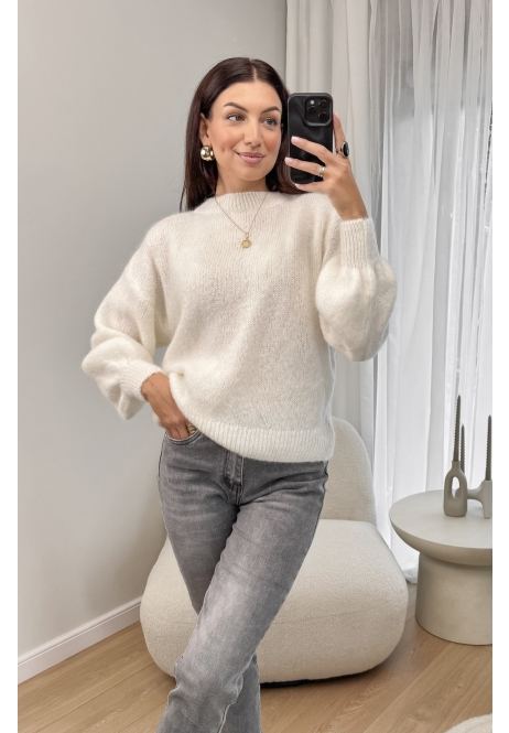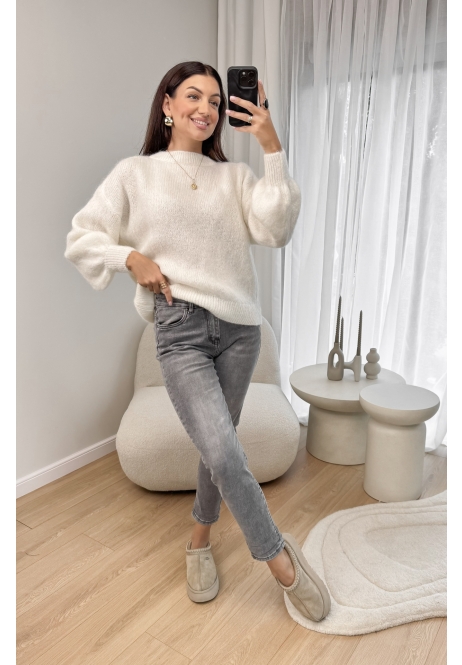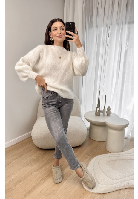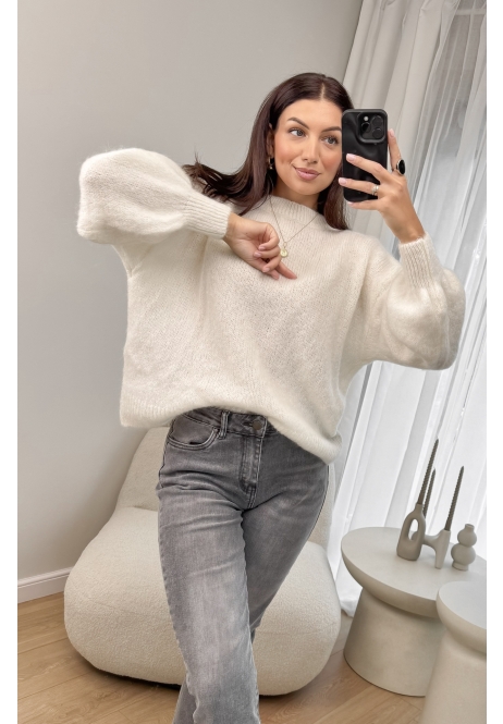 Przytulny, miękki i absolutnie uniwersalny. Ten sweter to must-have na chłodniejsze dni – otula ciepłem, a przy tym wygląda stylowo i kobieco. Luźny krój i lekko bufowane rękawy dodają mu charakteru, a neutralny kolor sprawia, że pasuje dosłownie do wszystkiego.